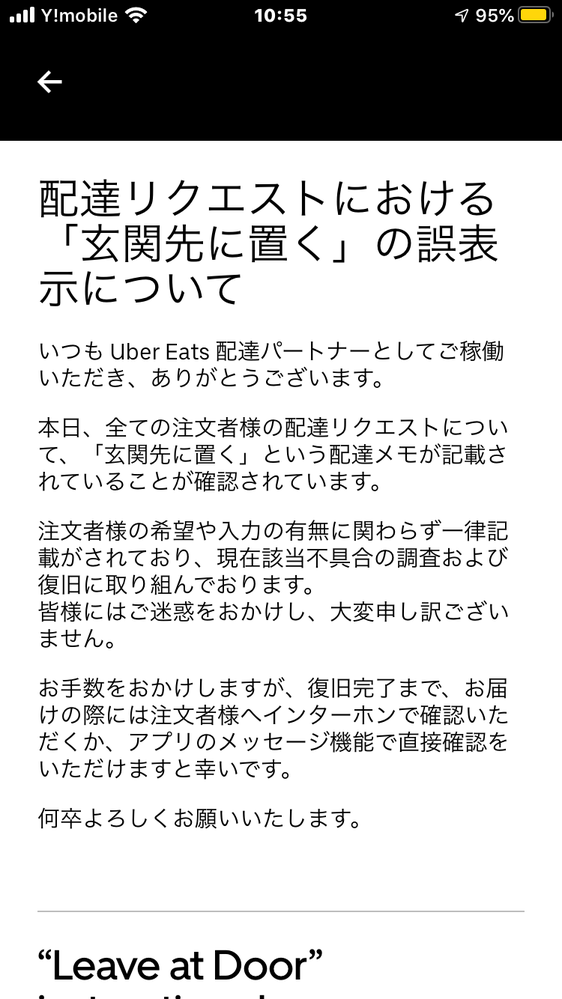 Uber Eats 置き配のやり方 玄関先にメモと台で配達パートナーの反応は
